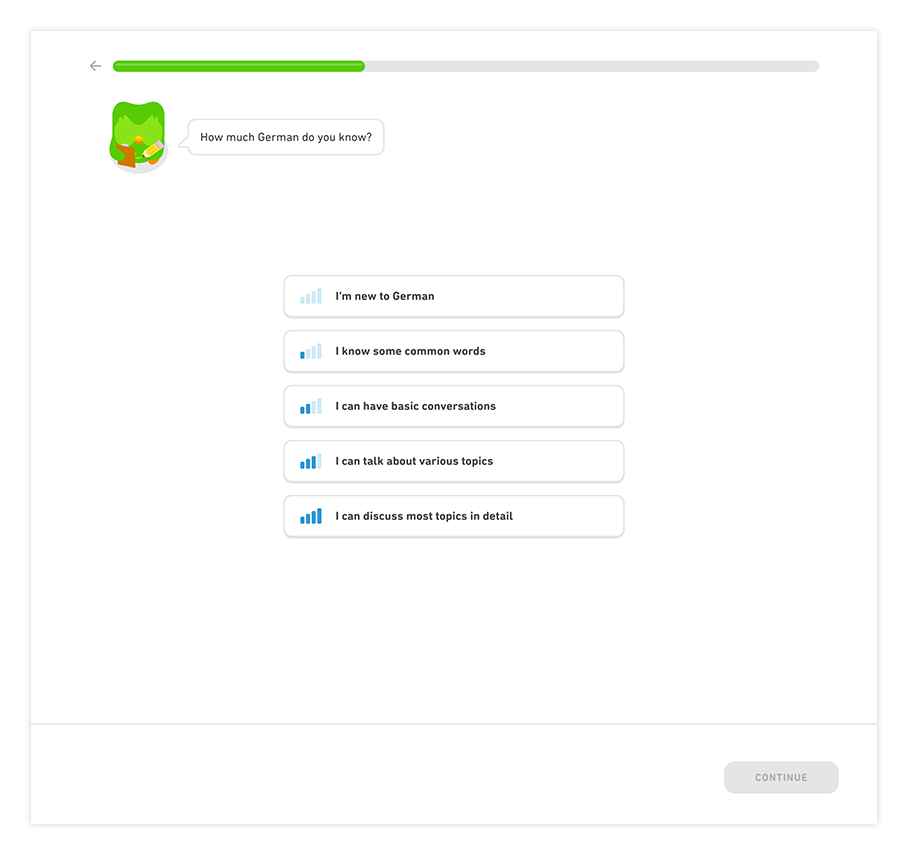 Benchmarked against conversational platforms like Coursera, ChatGPT, Duolingo, Linkedin and Spotify.